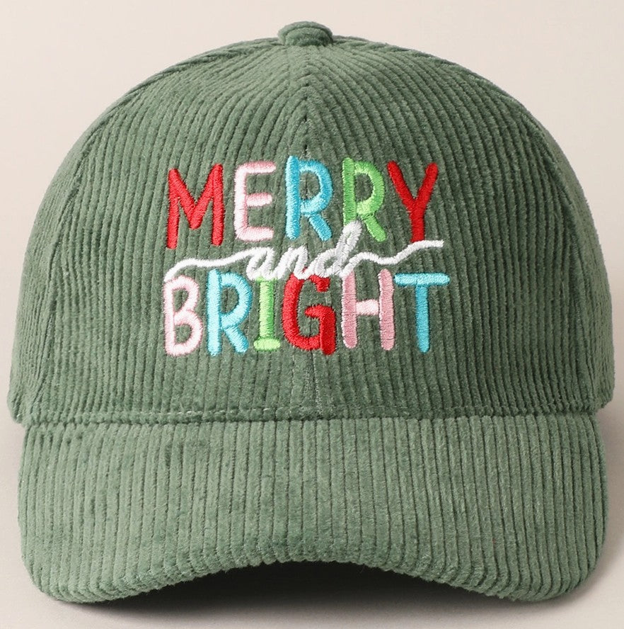 Fashion City Sage Merry Bright Embroidered Corduroy Hat