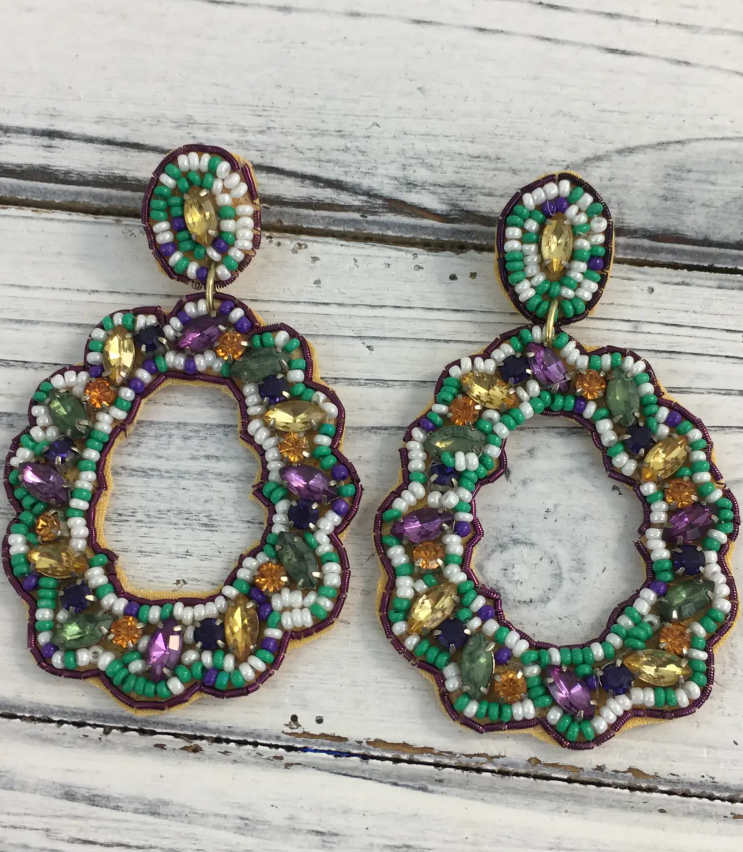 Song Lily Mardi Gras Beaded King Cake Earrings