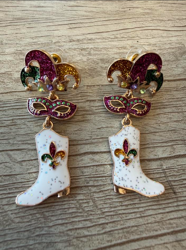 Song Lily Mardi Gras Jester Boots Dangle Earrings
