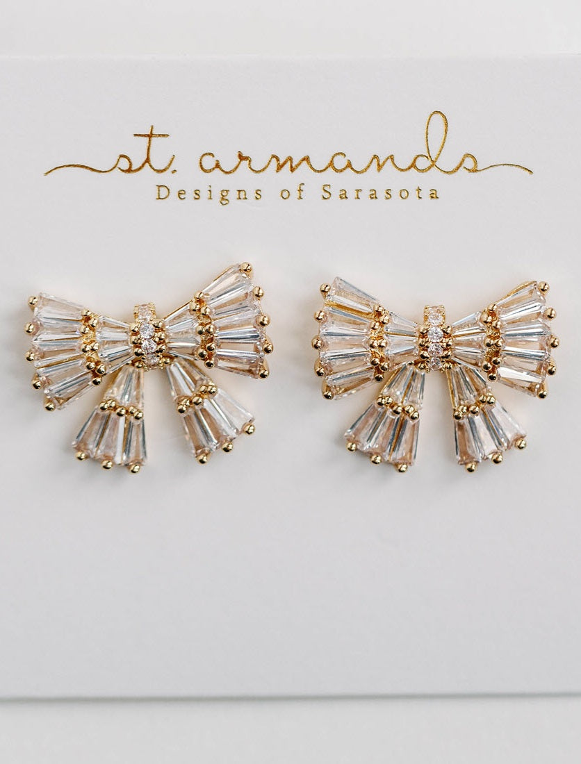 St Armands Designs Gold Maxi Sparkler Holiday Statement Stud Bow Earrings
