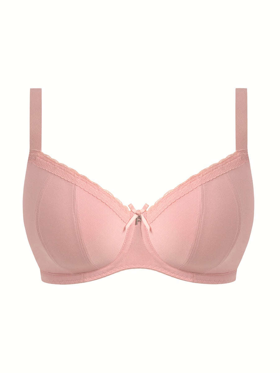 Say hey to the Freya Flirt Padded Half Cup Bra in Pink Frost. Lightly padded cups give you that gorgeously rounded boost, while the super soft TENCEL™ Modal Micro Air fabric keeps things comfy from AM to PM. Finished with cute pink bows and the signature “F” charm, it’s flirty, fun, and ready to level up your everyday lineup in the sweetest pink shade.