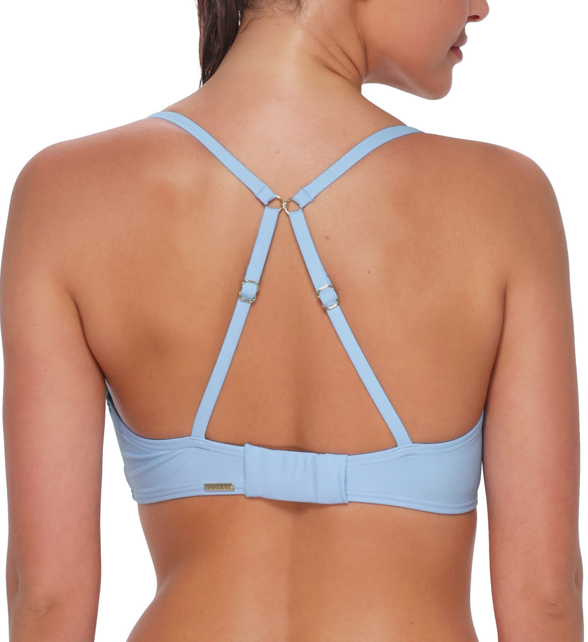 The Kauai Keyhole is chic and supportive. This top is equipped with a keyhole for adjustable coverage. Also featuring an underwire, removable cups, adjustable straps with a J-hook and a hidden bra closure in the back.