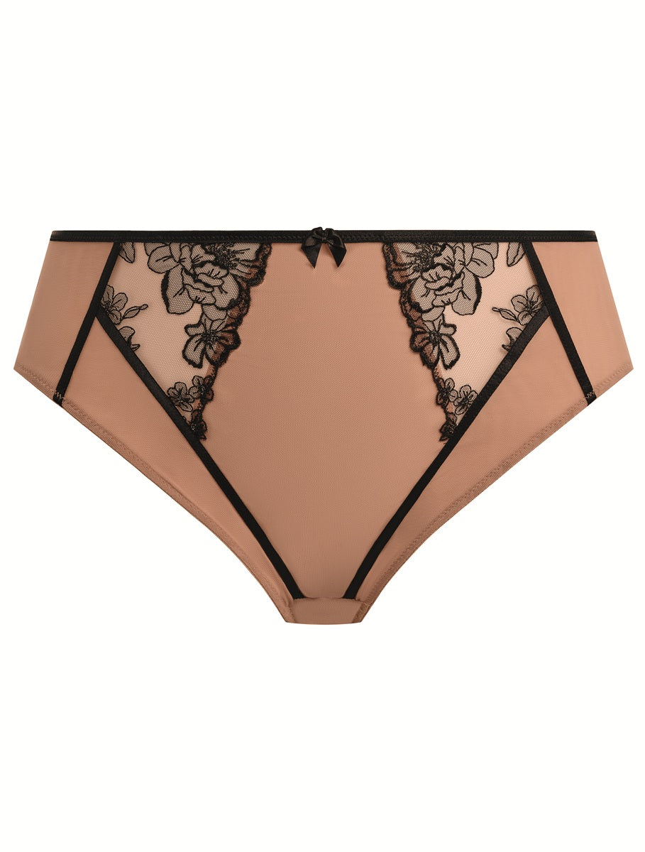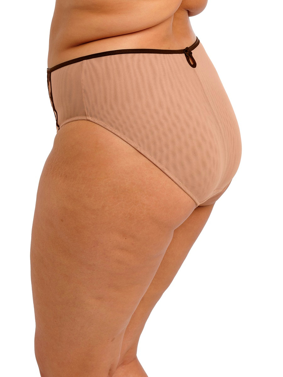 Meet Elomi’s Teagan High Leg Brief in our essential Café Au Lait hue. Designed with a double layer of stretch mesh across the front, sides and back for all day comfort and support. Plus, the precision printed embroidered front panels, laced with soft metallic yarns that shimmer with every move, make this brief a real showstopper!