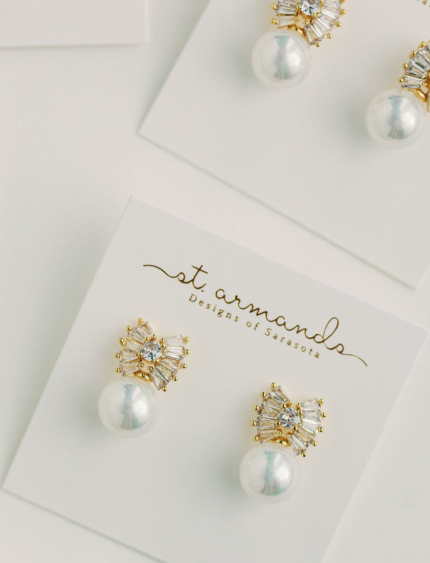 These sweet little gold pearl sparkler bow earrings make a great grab and go gift for the upcoming christmas and holiday season!  They have a post back and look fabulous for all formal occasions!