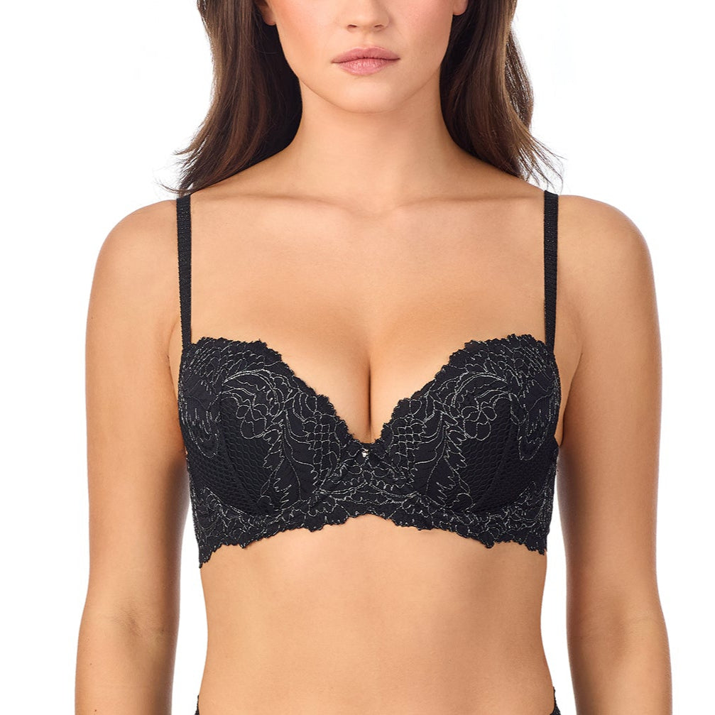 The Lace Allure Demi has an open sweetheart neckline and new soft contour pads that lift and shape—never bulky. Cups are wrapped in our signature stretch lace with a botanical motif over an airy open-net ground, while a shaped, narrow frame and super-soft peach elastics keep everything supported and secure against the chest wall.