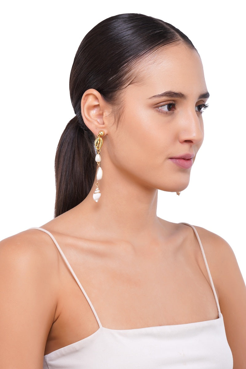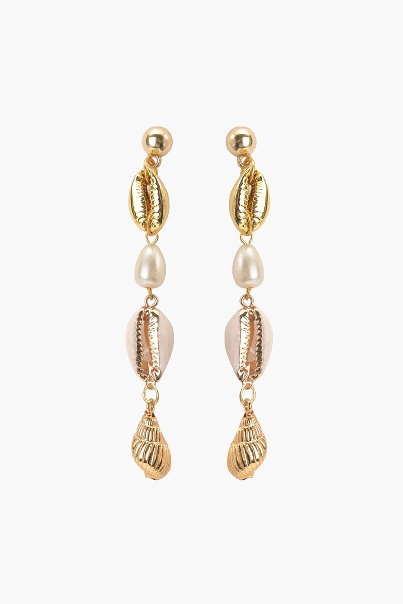- Handmade beaded earrings featuring pearls and gold-plated shells.