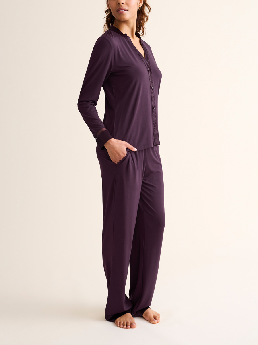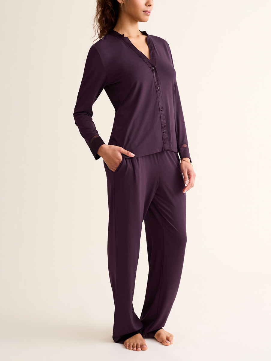 When we say, ‘get your beauty sleep’, we mean slip on this luxurious PJ set. Enjoy the stylish mesh details, ultra-soft modal fabric, and satin drawstring.