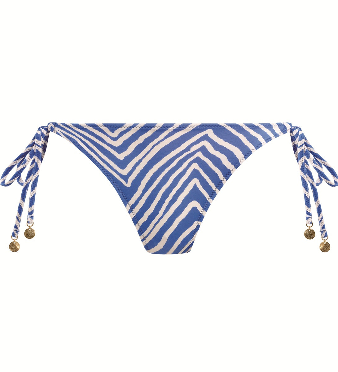 Add a fun twist to your beach basics with Freya's Fiji Falls Tie Side Bikini Brief in Black! Featuring playful tropical stripes and adjustable ties, to ensure you have the perfect fit! Pair it with our Twilight Soul Plunge Tankini Top for a funky look that's ready for the sunshine.