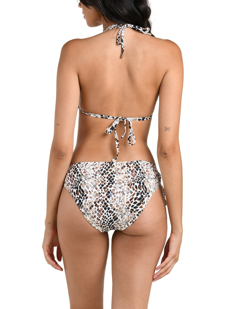 The Halter Triangle Top from our Wild Whispers collections features a wispy cut and deep v-neckline is playful, while the adjustable bust coverage tailors to your coverage needs. Self-tie closures at the neck and back allow for full customization.