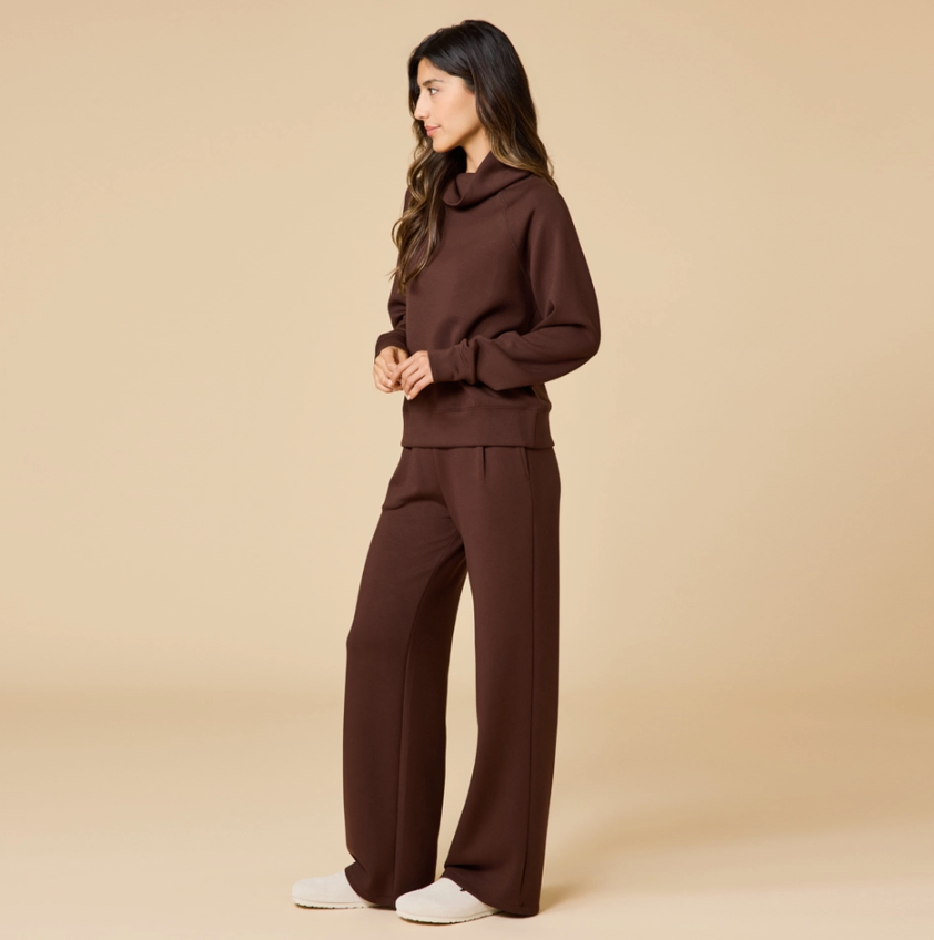 Softies Dreamtech Espresso Mock Neck & Pleat Pant Athleisure Lounge Set 5200